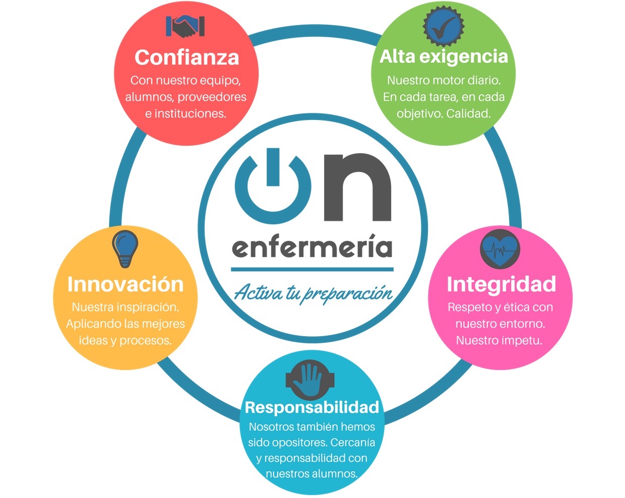 Para nosotros es muy importante trabajar con unos valores claros que lleguen, a través de cada una de las personas de nuestro equipo, a todos los procesos, acciones, servicios, cursos, al trato con nuestros alumnos, proveedores, instituciones y colaboradores, a cada una de nuestras relaciones. Los valores que nos definen, que están desde nuestro inicio, que forman parte de nuestro ADN: Confianza, Alta exigencia, Integridad, Responsabilidad e Innovación.